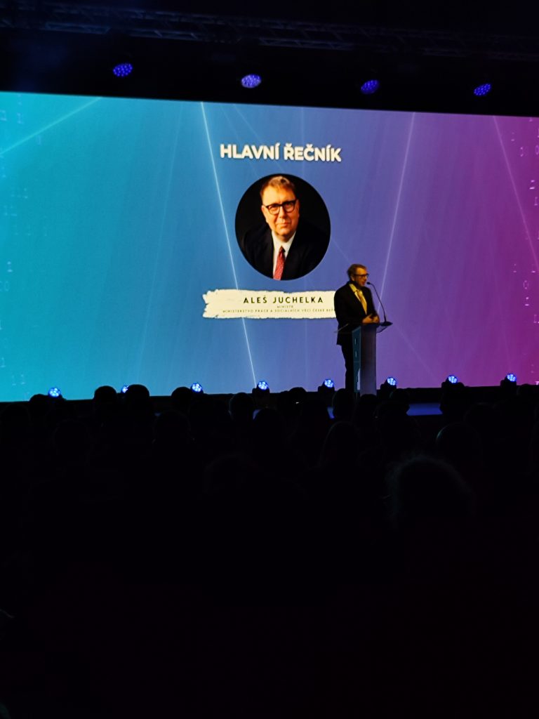 Úvodní slovo patřilo Aleši Juchelkovi, který z pozice ministra práce a sociálních věcí hovořil stručně a poměrně věcně především o trendech v zaměstnanosti – zániku nejen množství pozic, ale i celých oborů v čase (např. administrativní role), naopak o „hladu“ po IT specialistech a tech-orientovaných rolích, který vnímáme již nyní a bude jich třeba čím dál víc. Mluvilo se také o potřebě edukace ve vztahu k novým technologiím, za všechny jmenujme AI, kde zaznělo, že podporovány musí být všechny skupiny – od rodičů a mladistvých, učitele, až po starší generaci.