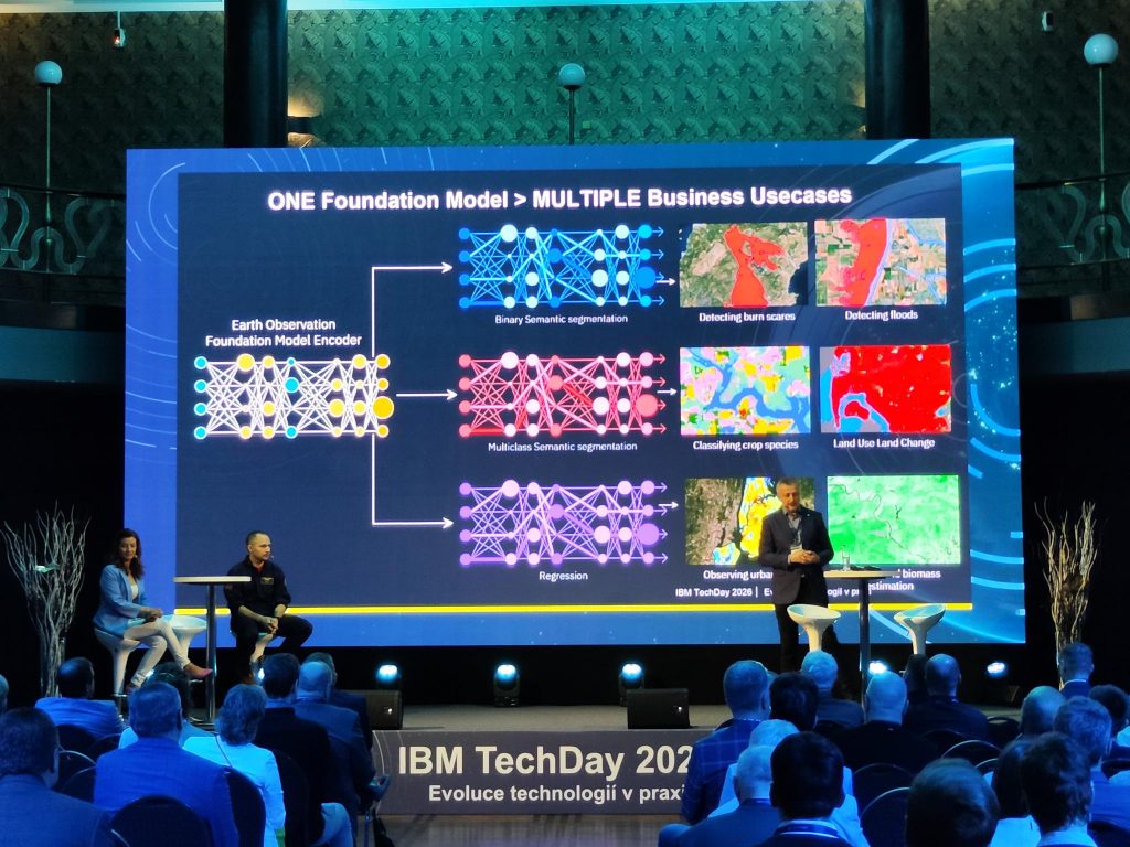 V úvodním vstupu s Martinem Švíkem z IBM, který byl dedikován historické spolupráci NASA a technologií IBM, se hovořilo například o zpracovávání obrovského množství dat – o přínosech technologií jako AI, na atraktivních a konkrétních ukázkách popisujících třeba modely počasí, přes různé heat mapy až po velmi sofistikované predikce různého typu.